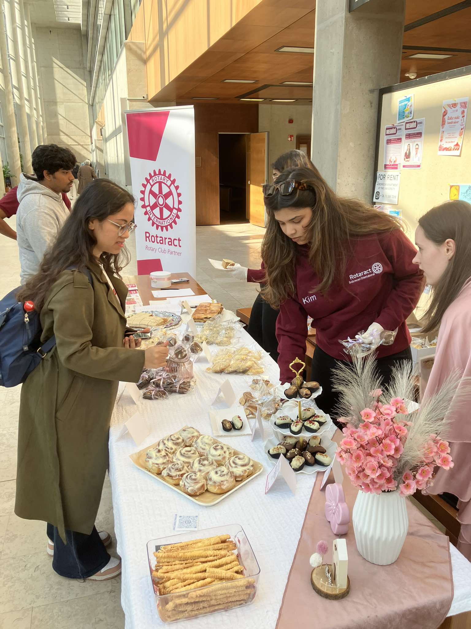 Többedjére szerveztük meg az "Egy csésze Rotaract" fantázianevet kapott projektünket, aminek keretében az egyetemi polgárok egy pohár meleg teát és mellé egy motiváló idézetet kaphatnak, ami a hideg időben is segít átvészelni a tanítási napot. Most viszont egybekötöttük eseményünket testvérklubunk, a Rotaract Club Debrecen Ibnternational nőnapi sütivásárával.